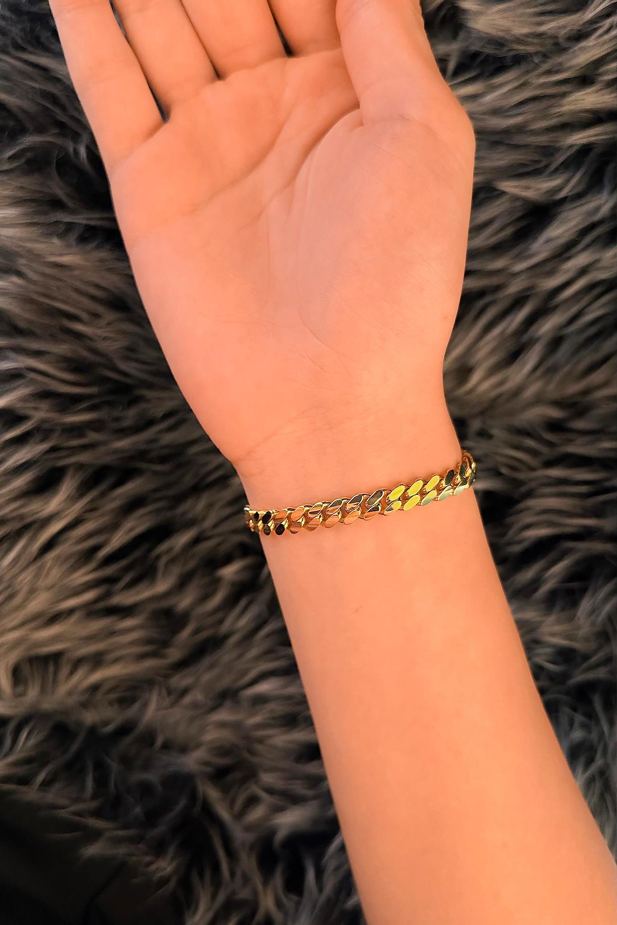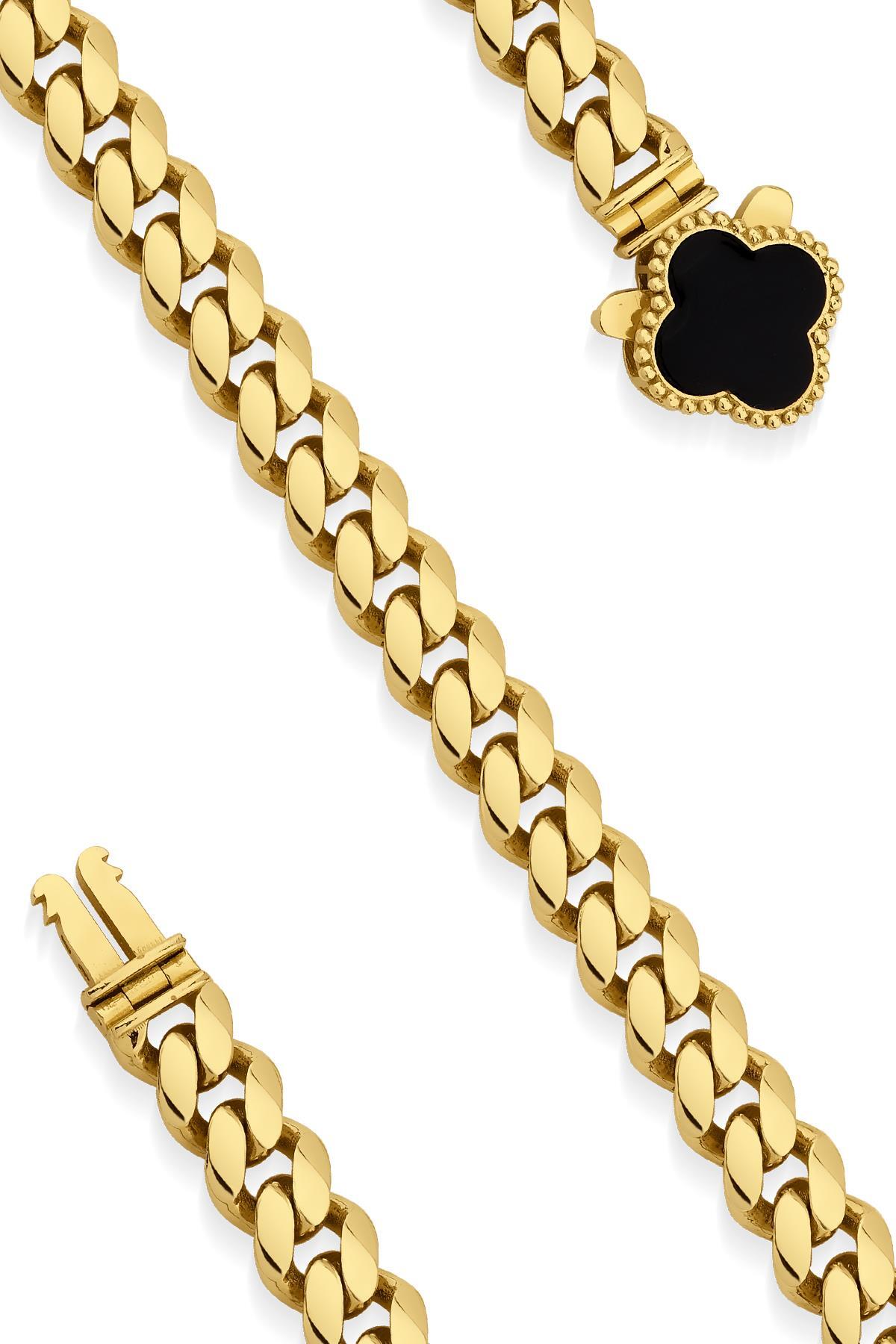14 ayar altından İkra Kuyumculuk kalitesi ve işçiliği ile üretilen Şans Yoncası Detaylı Gurmet Bileklik, modern ve kalın Gurmet zincir modelini, uğur ve şansı simgeleyen Dört Yapraklı Yonca figürüyle birleştirerek hem şık hem de anlamlı bir tasarım sunar. Bilekliğin genişliği 7 mm‘dir ve uzunluğu 19 cm‘dir. Yaklaşık 12,75 gram ağırlığıyla tok ve dikkat çekici bir parçadır.