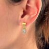 14 ayar sarı altından İkra Kuyumculuk kalitesi ve işçiliği ile üretilen Baget Küpe, modern ve şık bir tasarıma sahiptir. Küpe, dikkat çekici baget (dikdörtgen kesim) formuyla minimal ve zarif bir duruş sergiler. Bu modern ve klasik model, günlük kullanıma uygundur. Küpenin genişliği 1,56 cm‘dir. Ürünün yaklaşık çift ağırlığı 2,80 gramdır. Tüm küpe modellerimiz çift olarak gönderilmektedir.