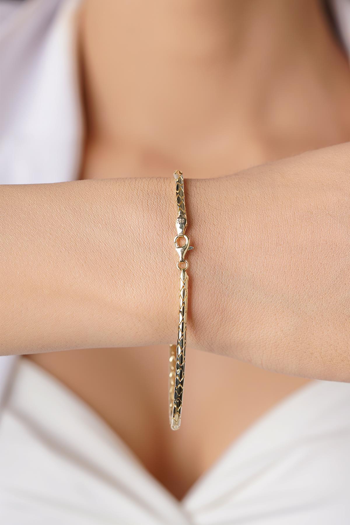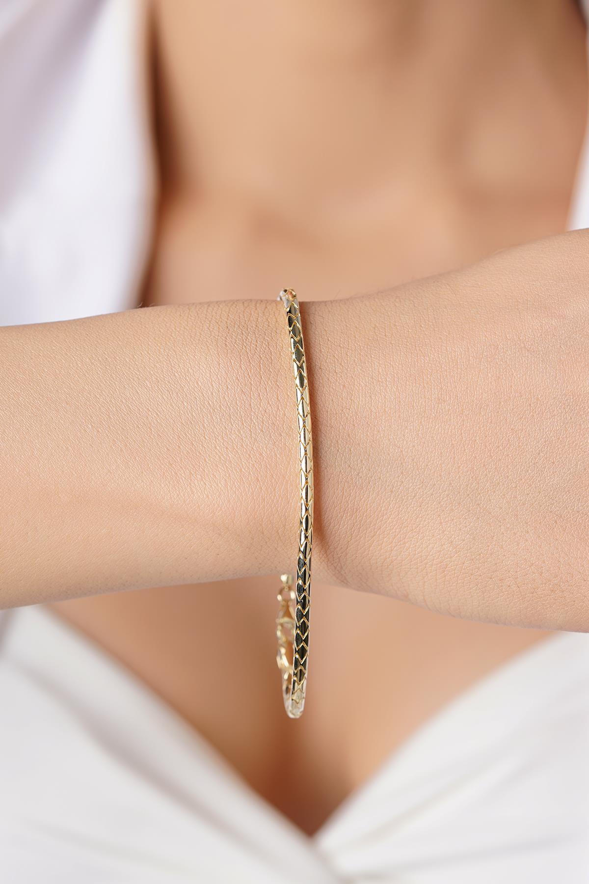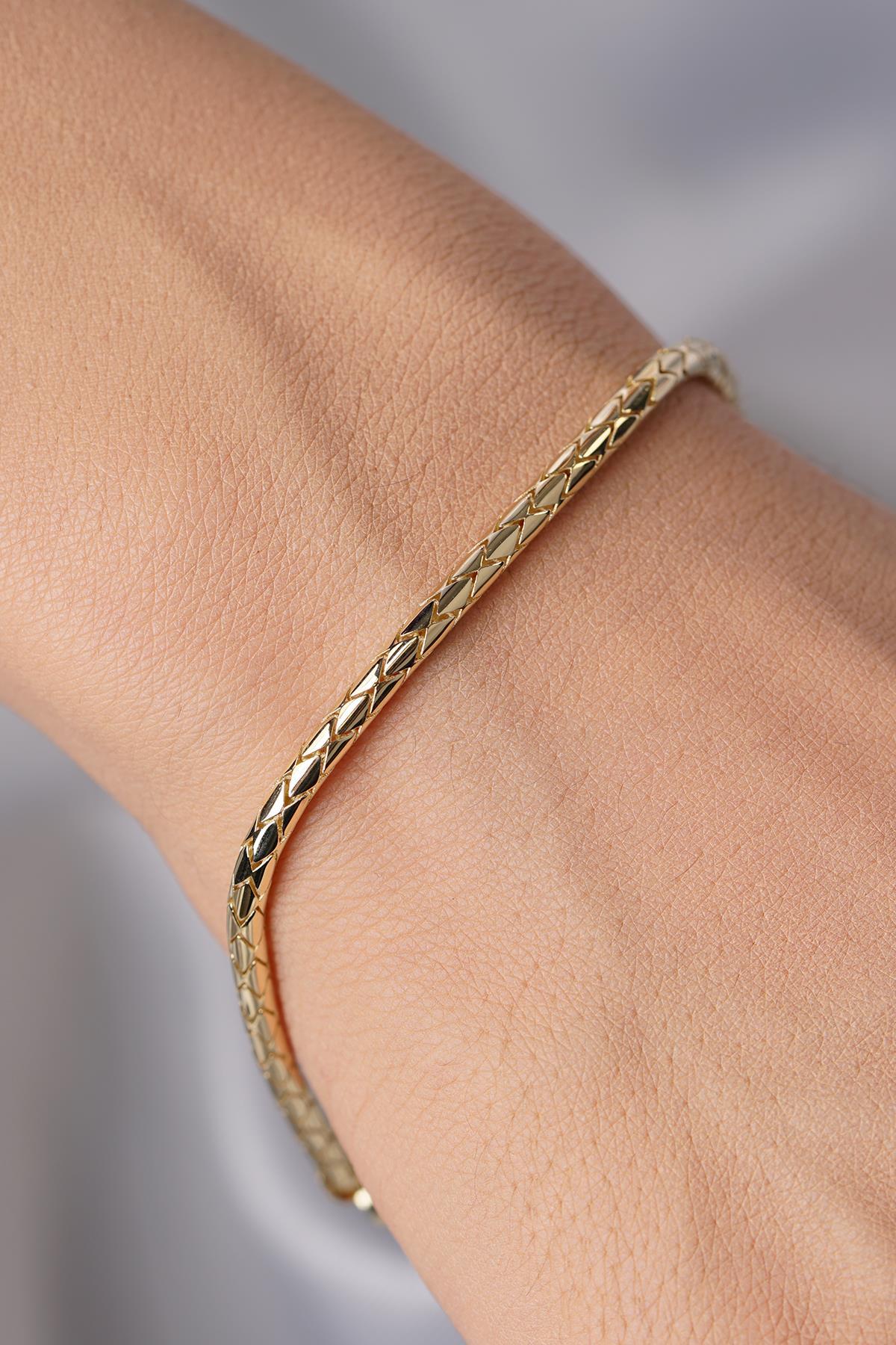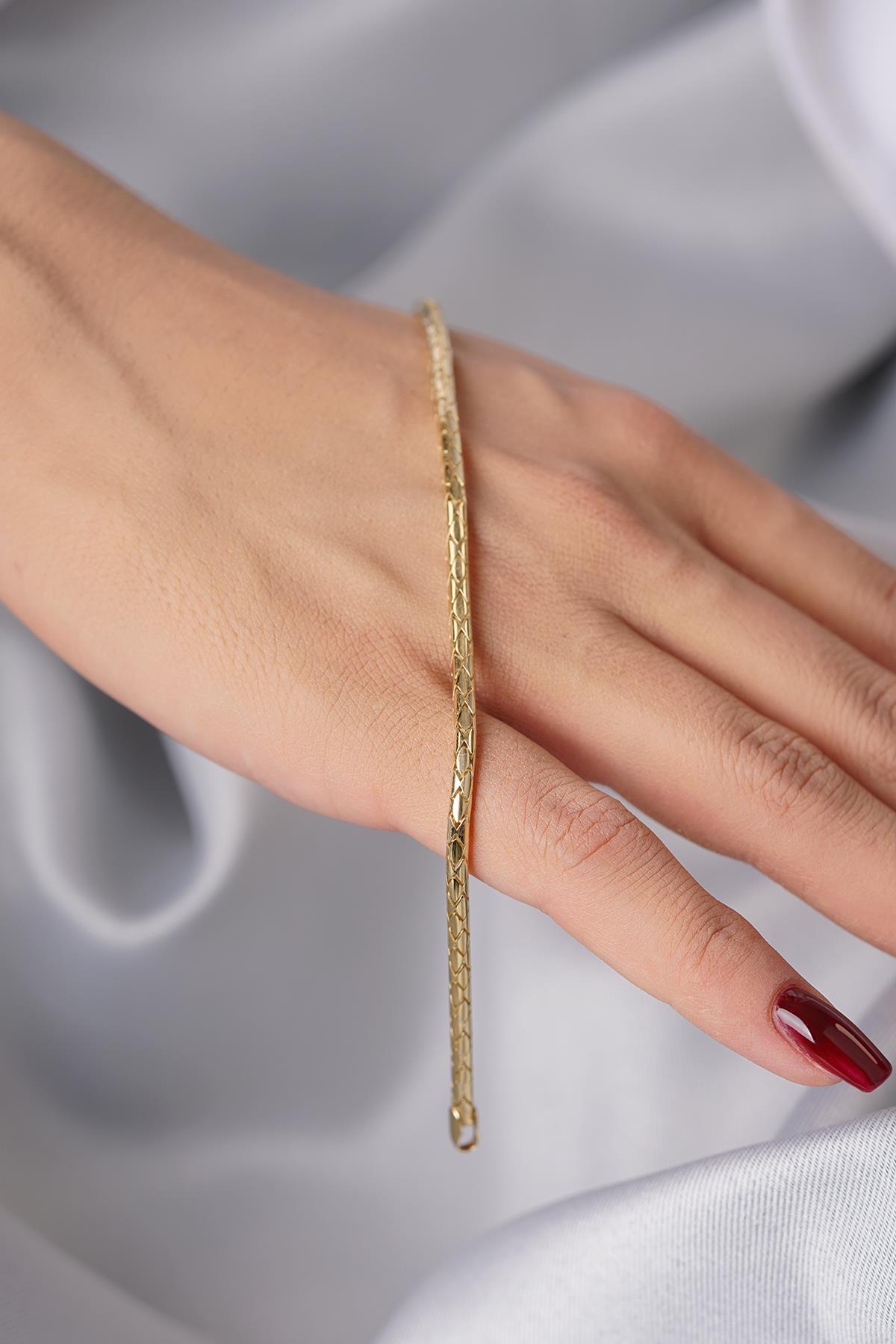 14 ayar altın burgu zincir erkek bileklik, 20 cm uzunluğunda, 5,25 gram ağırlığında ve 2,70 mm genişliğindedir. Şık, dayanıklı ve günlük kullanıma uygun yapısıyla uzun ömürlü bir kullanım sunar.