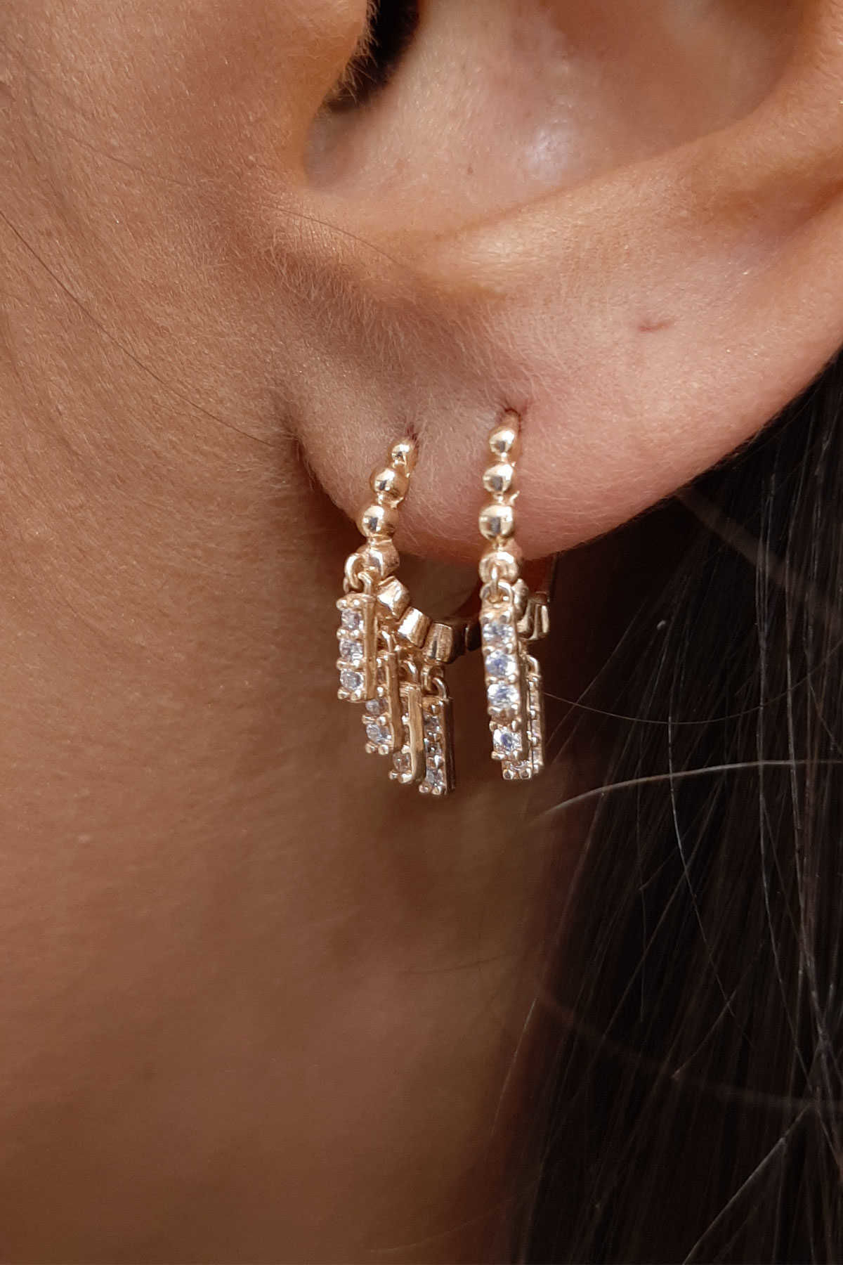 14 Ayar Altın Sıra Taş Sallantılı Küpe