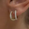 İkra Kuyumculuk koleksiyonunun modern ve asil parçalarından biri olan 14 Ayar Altın Siyah Taşlı Süzme Halka Küpe, kontrastın gücünü tasarıma taşıyor. 1,28 cm genişliğindeki halka formu üzerine titizlikle dizilen siyah taşlar, altının sıcak tonuyla kusursuz bir uyum yakalayarak sofistike bir görünüm sunar. 1,36 gram ağırlığındaki minimal ve hafif yapısı, kulakta varlığını hissettirmeden gün boyu konforlu bir kullanım sağlar.