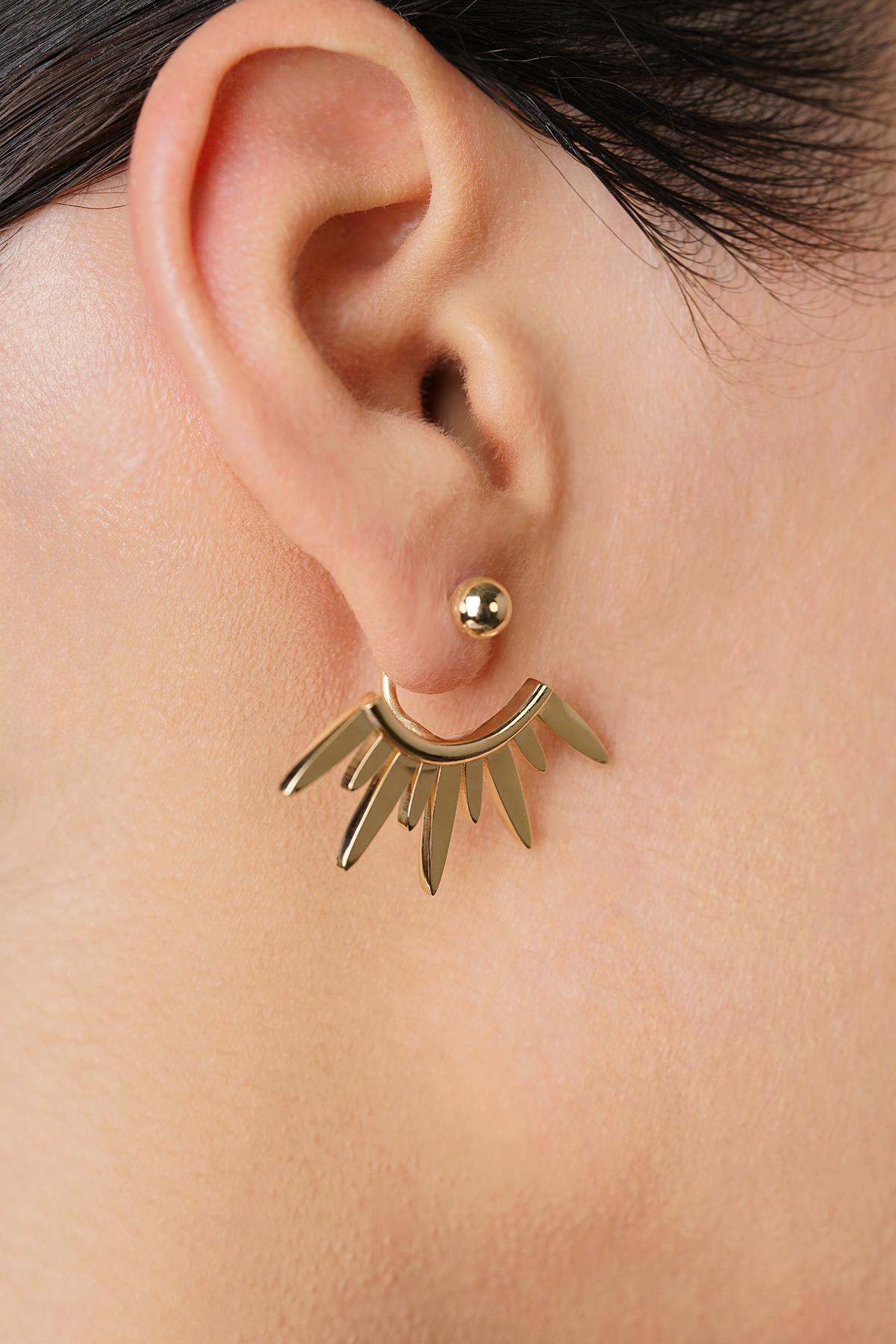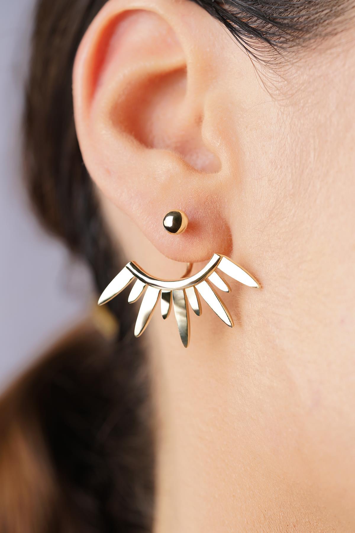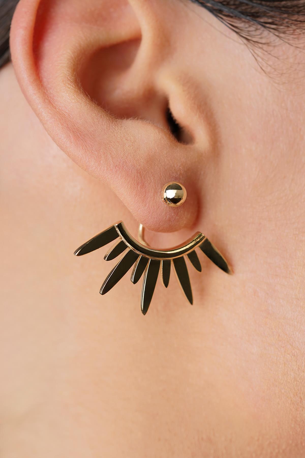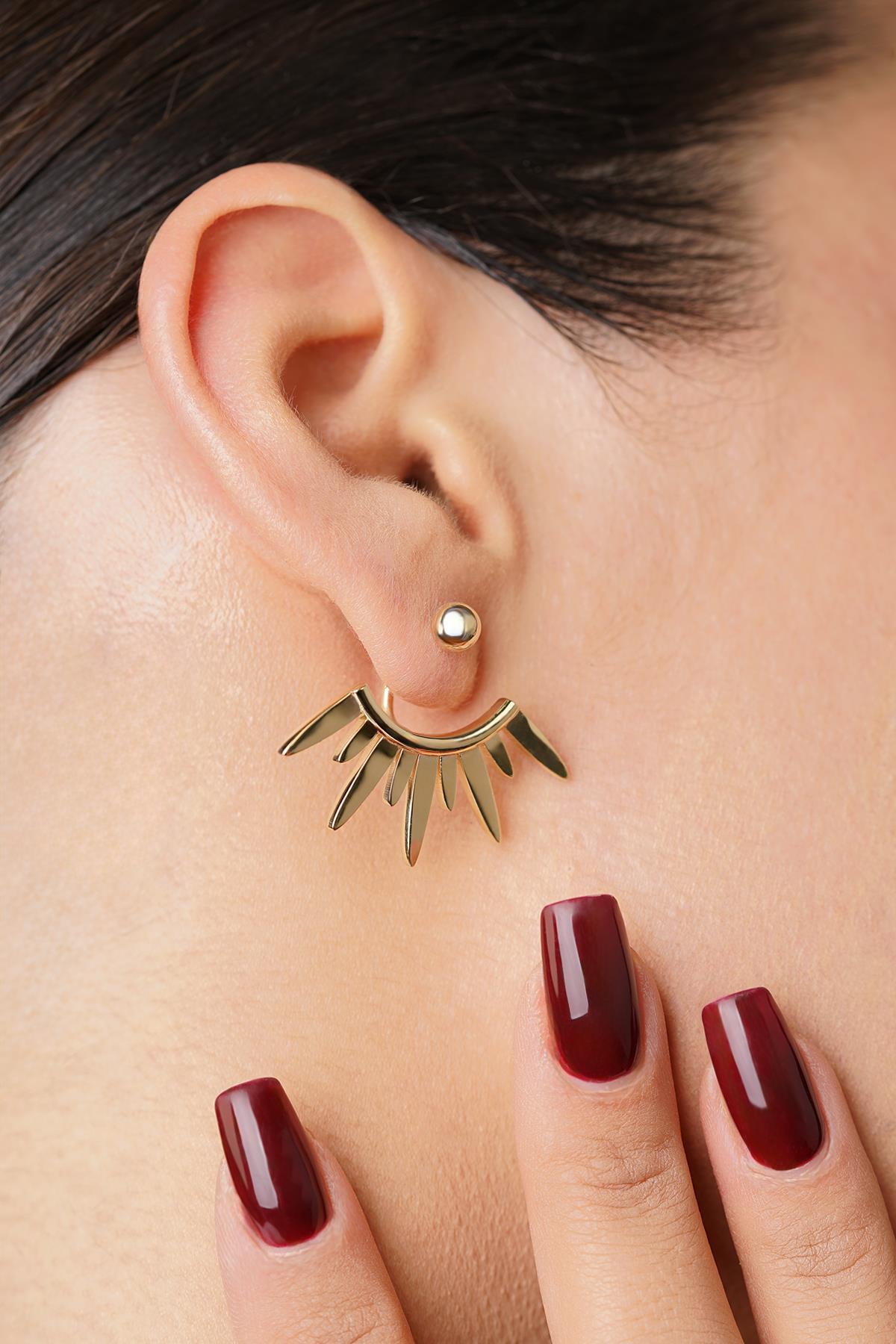 İkra Kuyumculuk seçkisinde yer alan 14 Ayar Altın Solaris Küpe, güneşin enerjisini ve ihtişamını yansıtan özel bir tasarımdır. 3.18 cm genişliği ve 2.55 cm yüksekliği ile kulakta hacimli ve iddialı bir duruş sergileyen bu model, ismini aldığı “Solaris” temasına uygun olarak merkezi bir parıltı sunar. 4.88 gram ağırlığıyla kalitesini hissettiren bu tasarım, altının sıcak tonlarını modern ve estetik hatlarla birleştirir.