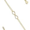 14 ayar altından üretilen Sonsuzluk Bileklik, yaklaşık 1,85 gram ağırlığa, 18 cm + 3 cm uzunluğa ve 7,60 mm genişliğe sahiptir. Sonsuzluk figürlü bu zarif ürün, 1 yıl garantilidir.