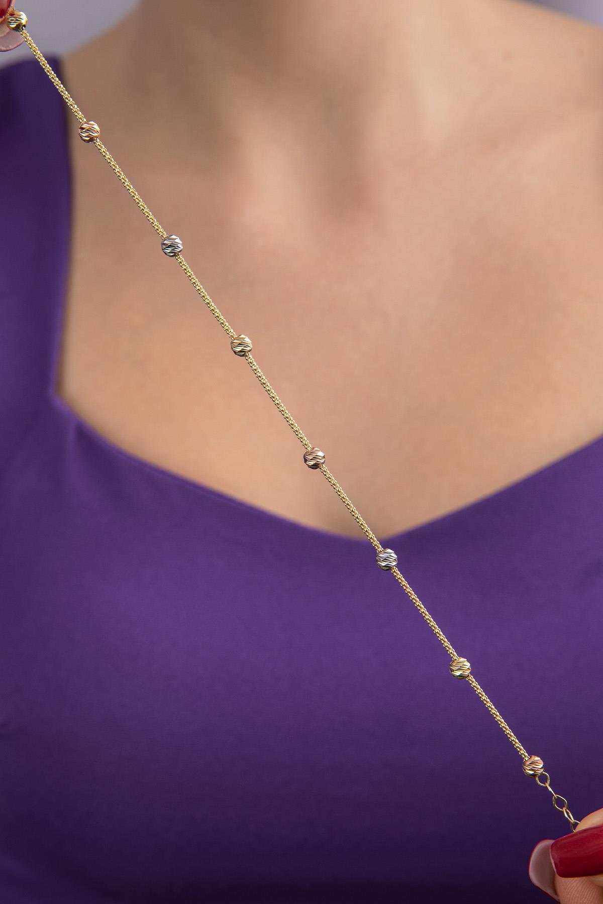 14 Ayar Altın Spica Zincirli Üç Renkli Dorika Bileklik