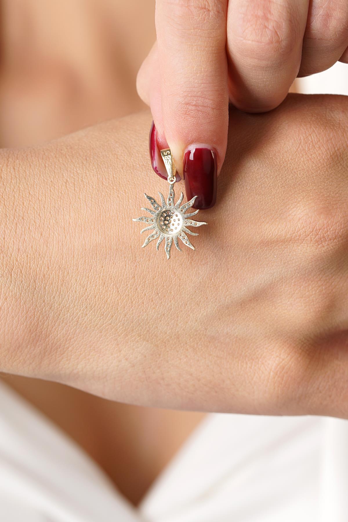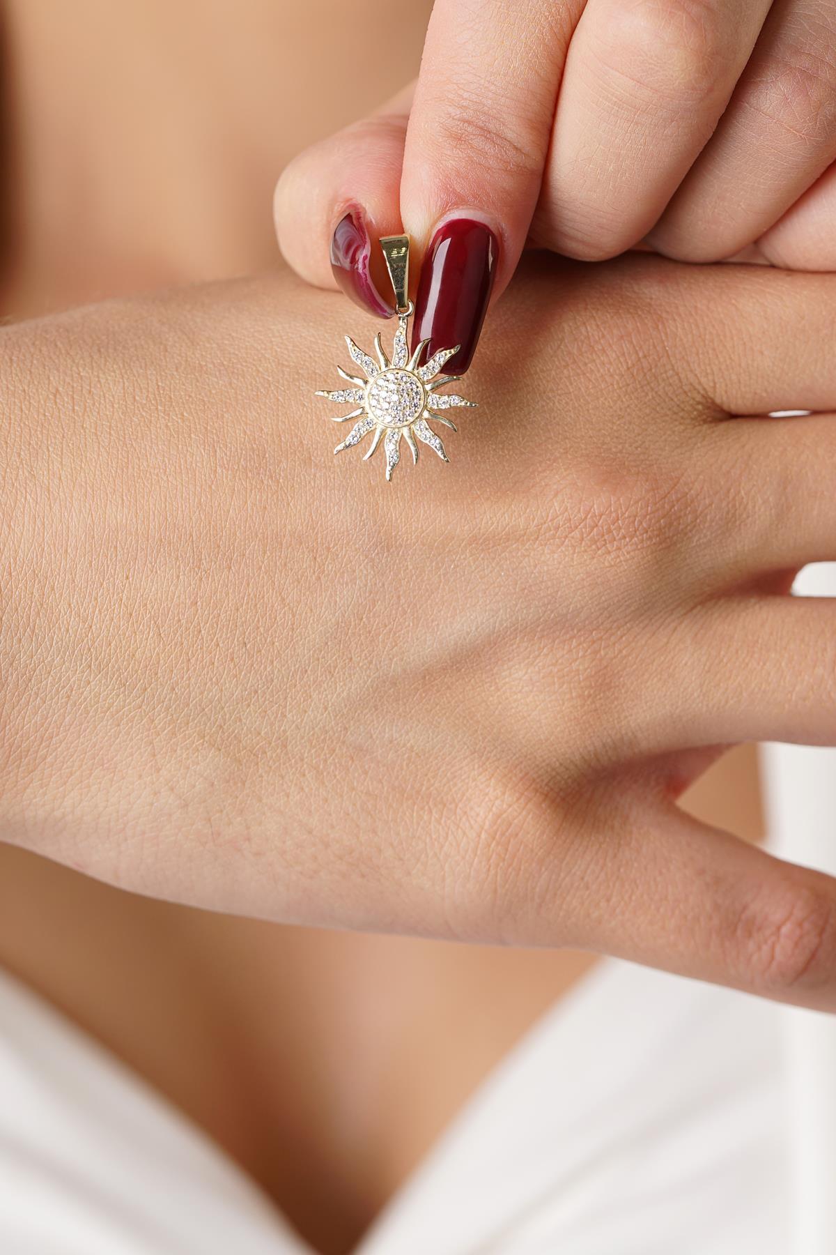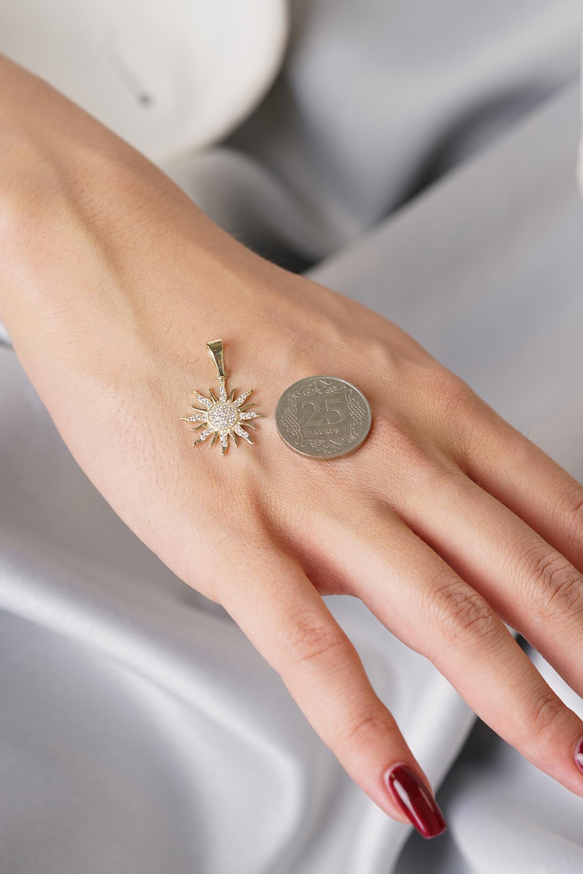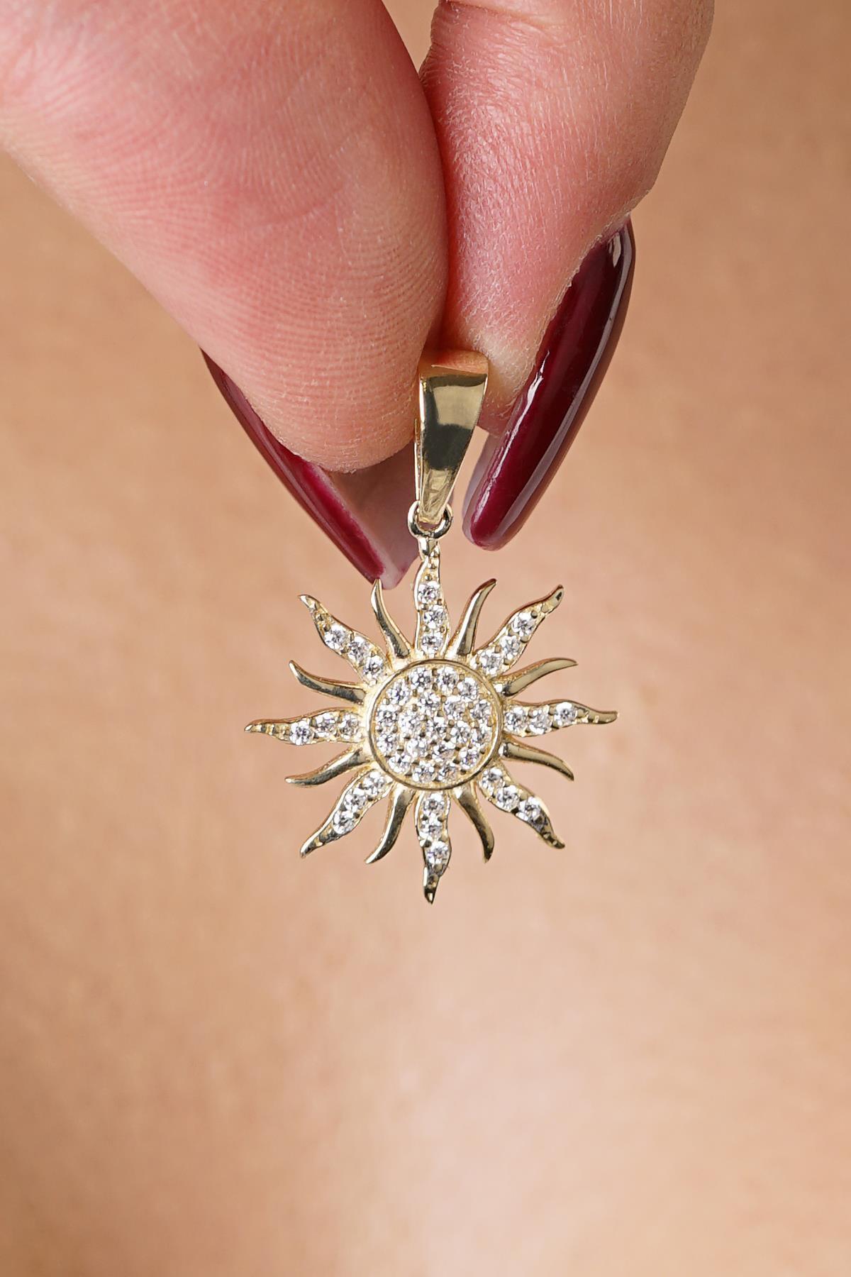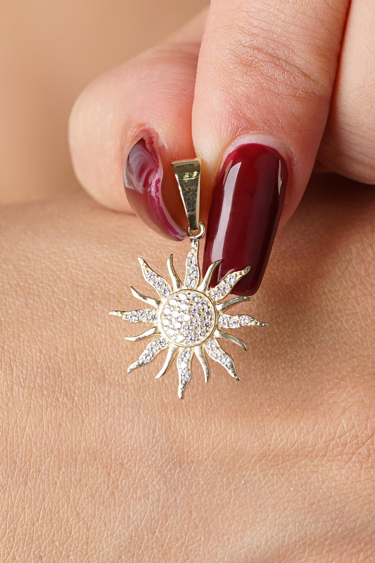 14 Ayar Altın Taş Detaylı Güneş Kolye Ucu