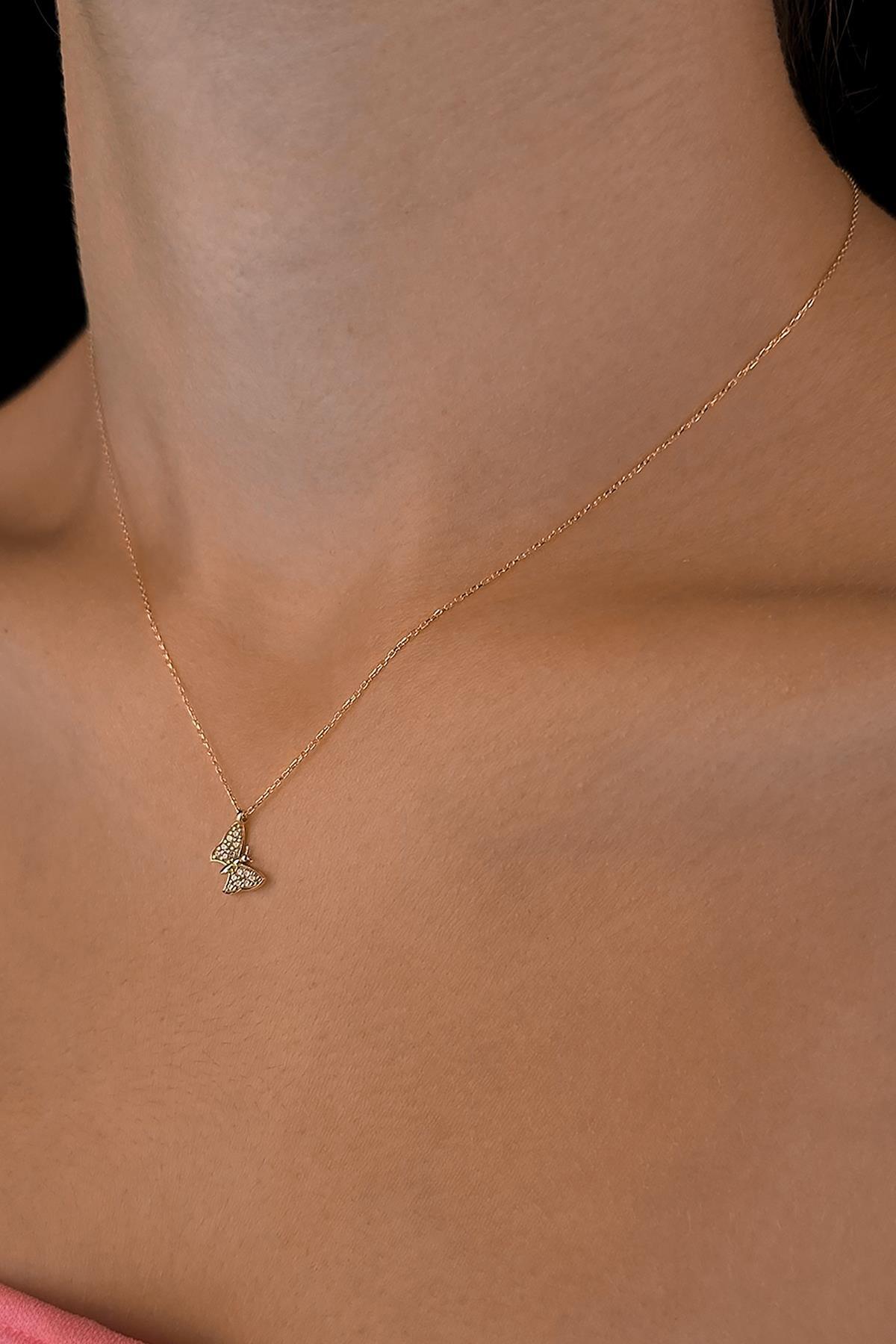 14 Ayar Altın Taşlı Kanat Kelebek Kolye
