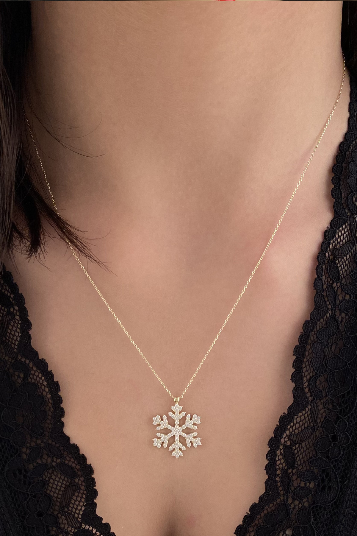 14 Ayar Altın Taşlı Kar Tanesi Kolye