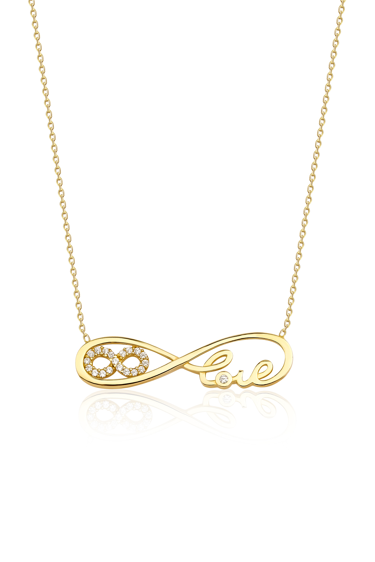 14 Ayar Altın Taşlı Sonsuzluk Love Kolye