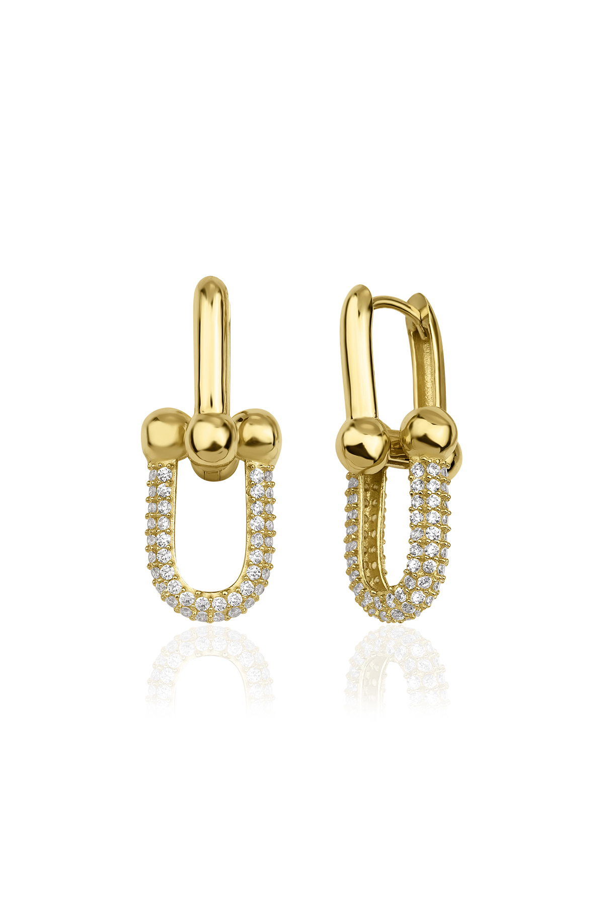 14 ayar altından İkra Kuyumculuk kalitesi ve işçiliği ile üretilen Taşlı Top Detaylı Ataç Küpe, modern ataç (kilitli, zincir veya uzun dikdörtgen) formunda tasarlanmıştır. Bu dikkat çekici küpe, üzerinde parlak taşlar ve şık top detaylarını birleştirerek dinamik ve modern bir görünüm sunar. Küpenin genişliği 11,45 mm (1,145 cm) olup, günlük kullanıma uygundur. Ürünün yaklaşık çift ağırlığı 5,60 gramdır. Tüm küpe modellerimiz çift olarak gönderilmektedir.