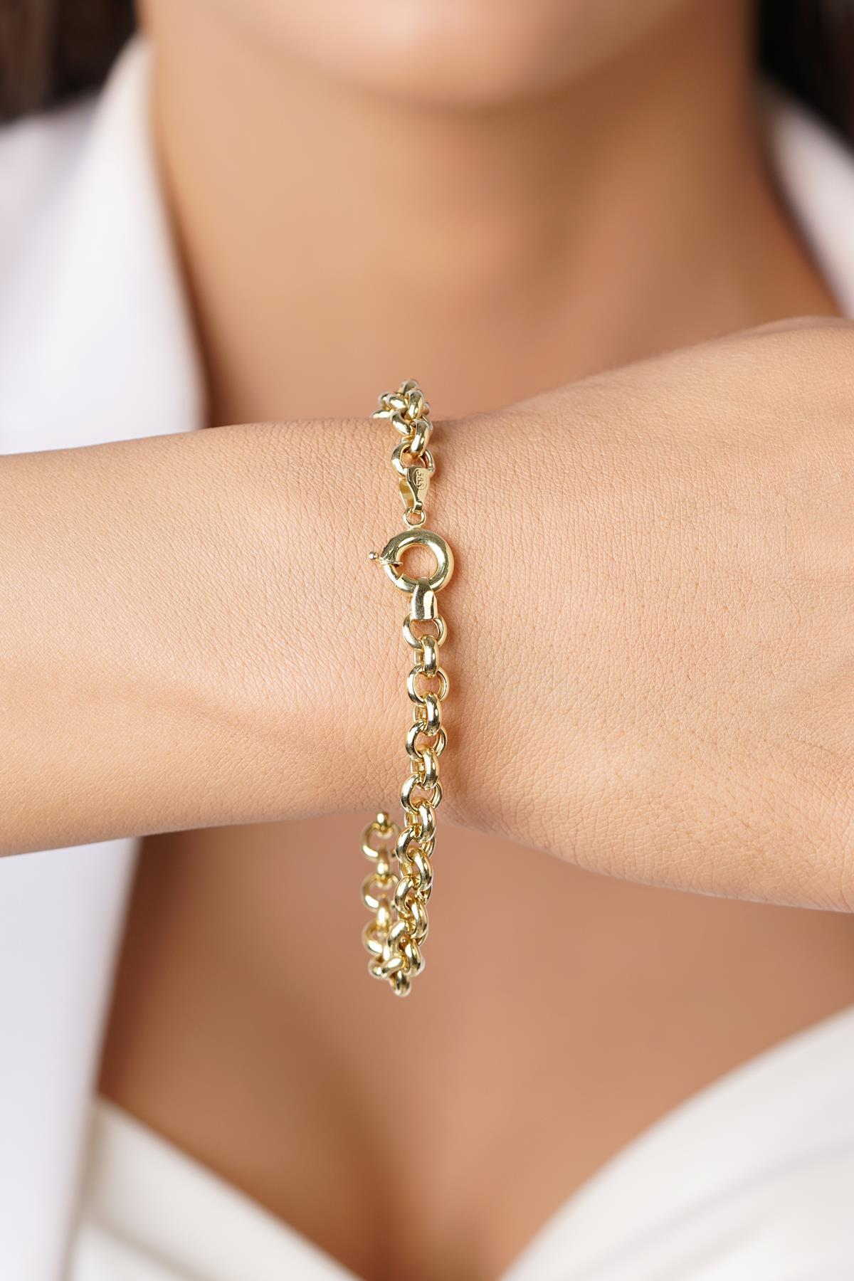 14 Ayar Altın, 6,25 mm genişliğinde ve 20 cm uzunluğunda üretilen bu şık bileklik; günlük kullanıma uygun, parlak ve modern bir görünüme sahiptir. 1 yıl garanti ve ömür boyu ücretsiz bakım hizmetiyle uzun yıllar değerini korur.