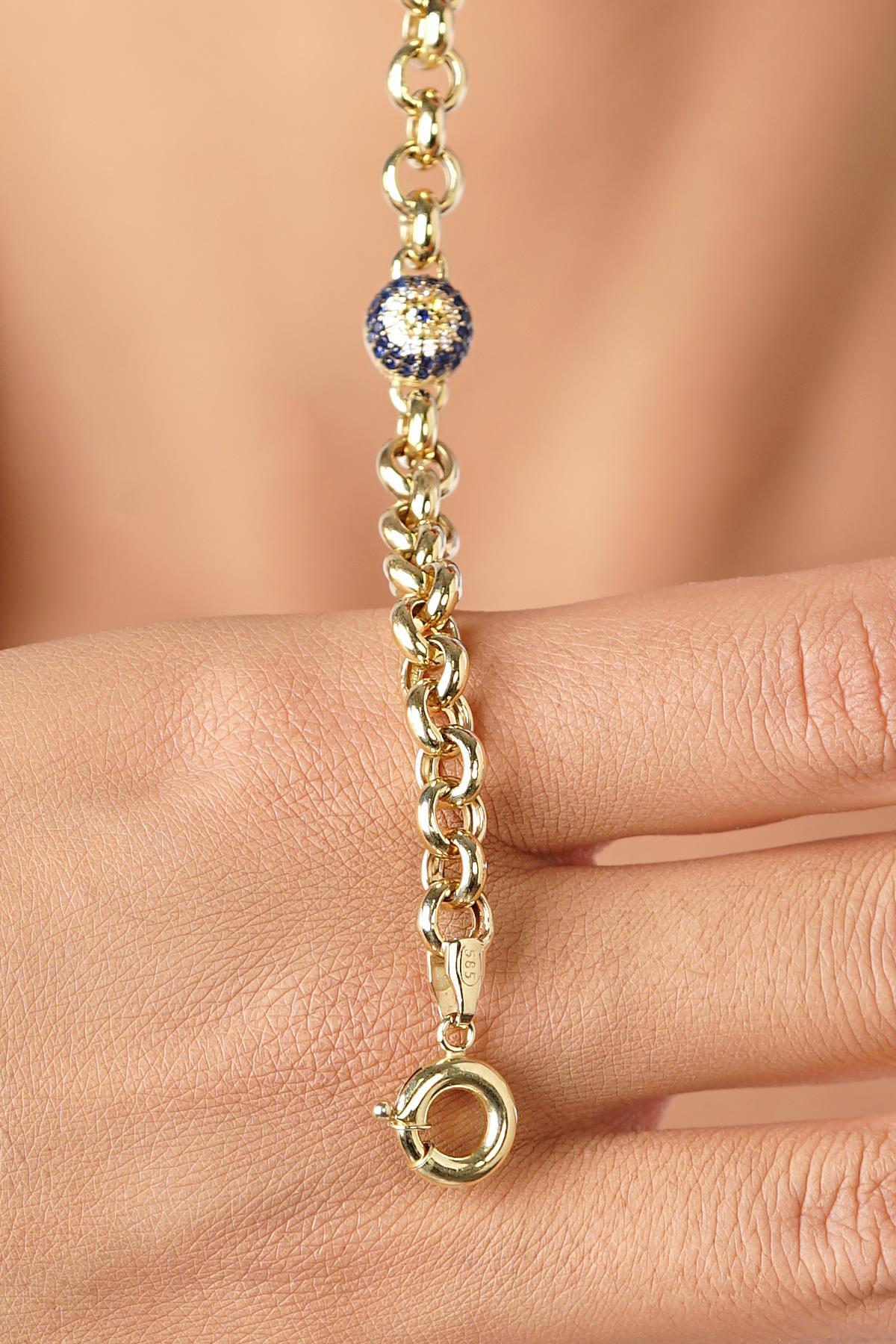 14 Ayar Altın Tek Göz Detaylı Doch Bileklik