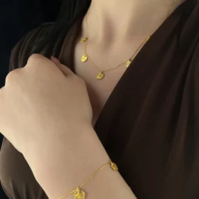 50 cm uzunluğundaki kolye ve 19 cm uzunluğundaki bileklikten oluşan Teressa Set, gün boyu konforlu kullanım için ergonomik olarak tasarlanmıştır. Usta işçilikle hazırlanan bu özel takım, modern kadının günlük stilinden gece şıklığına kadar her ana eşlik edebilecek karakterde, rafine bir yatırım parçasıdır.