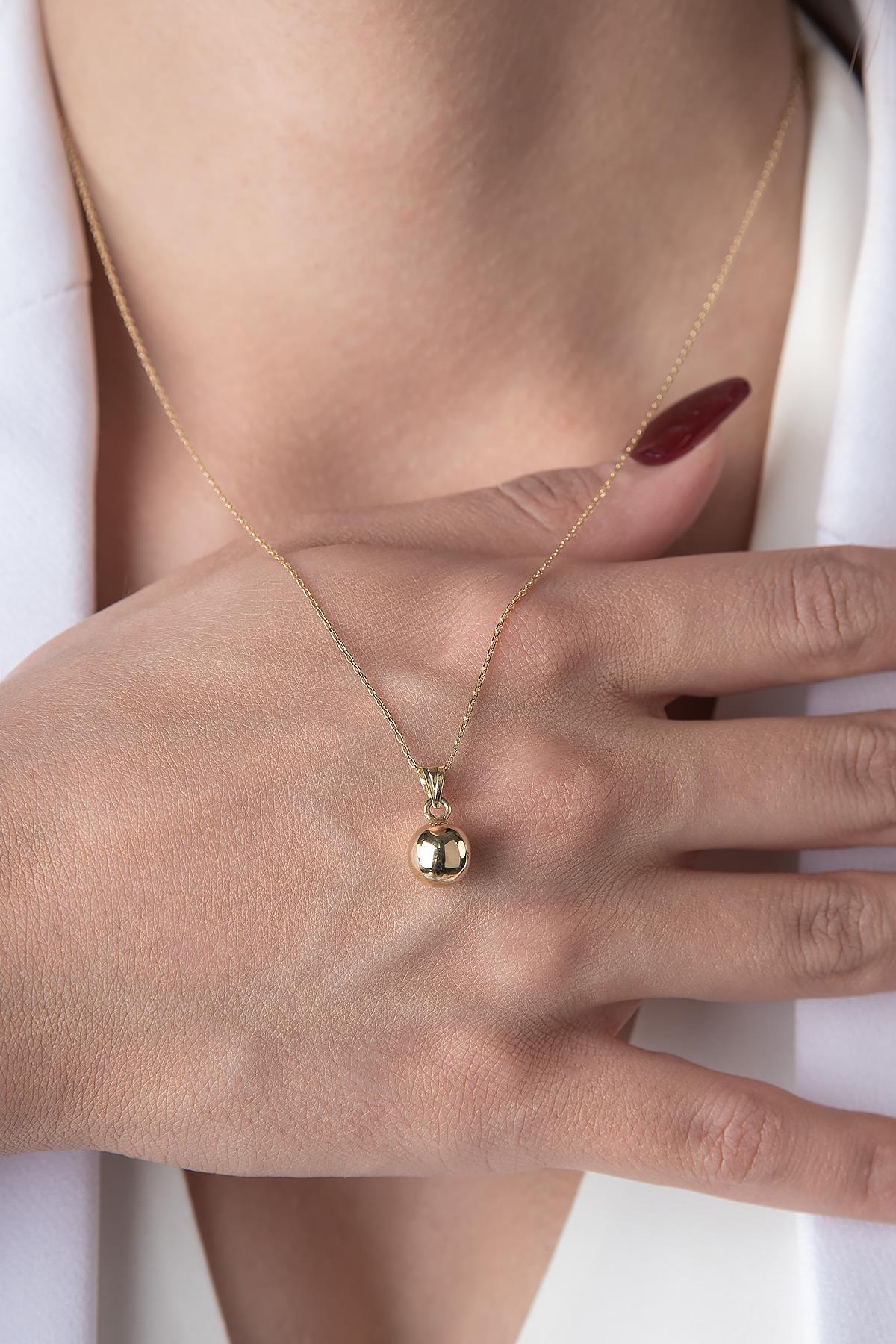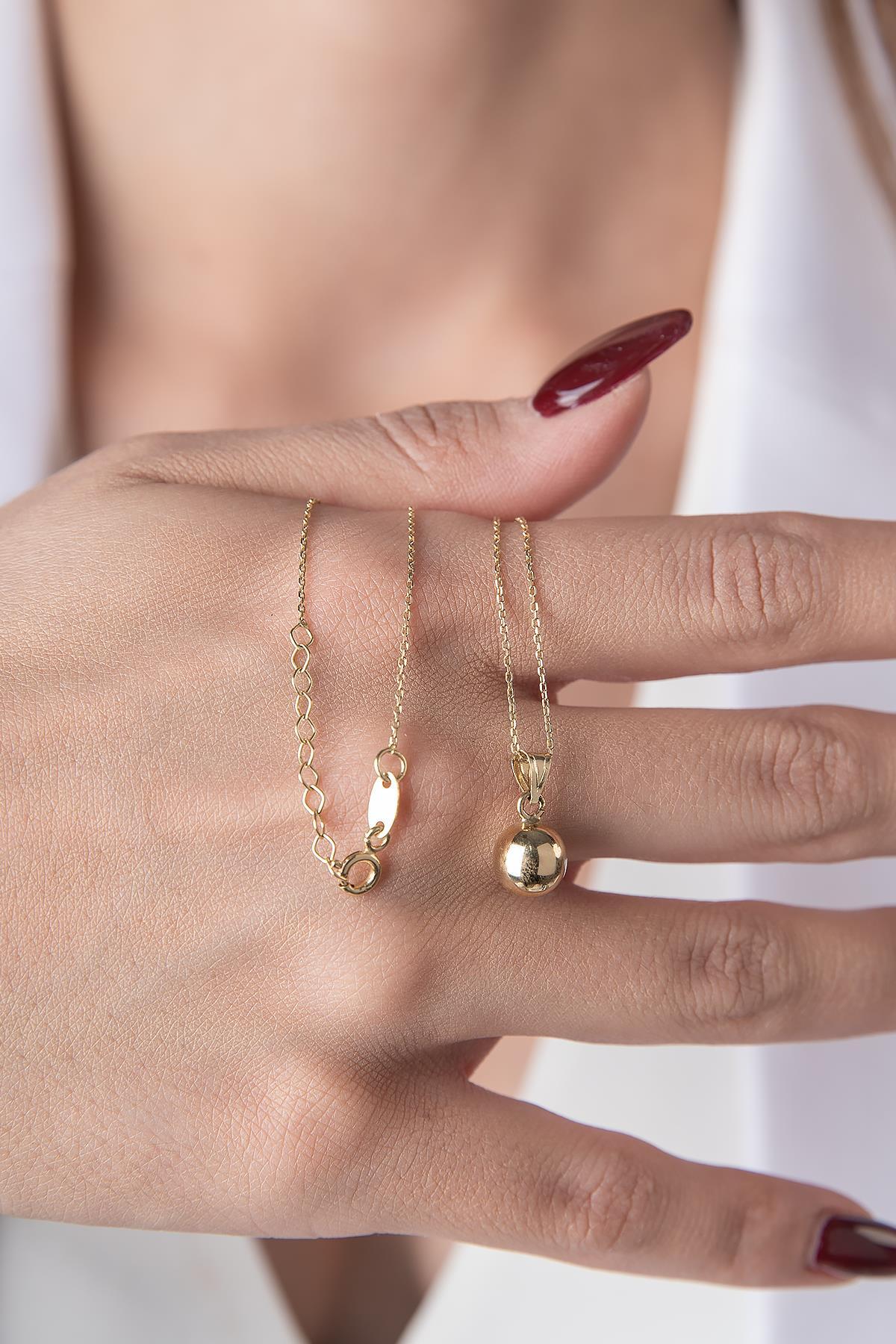 14 ayar altından üretilen Top Sallantılı Kolye, yaklaşık 1,94 gram ağırlığında, 45 cm uzunluğundadır. Modern top figürü detayına sahip bu sallantılı kolye, 1 yıl garantilidir.