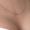 Topçuk zincir üzerinde pul sallantılı tasarıma sahip bu kolye, hareketli yapısıyla dikkat çeker.
