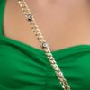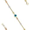 14 ayar altından İkra Kuyumculuk kalitesi ve işçiliği ile üretilen Üç Göz Detaylı Doch Bileklik, şık Doch (Dok) zincirini üç adet koruyucu nazar (göz) figürüyle birleştirerek modern ve anlamlı bir tasarım sunar. Bilekliğin uzunluğu 20 cm + 2 cm uzatma halkası ile ayarlanabilir. Bilekliğin genel genişliği 7,50 mm‘dir. Yaklaşık 8,25 gram ağırlığıyla tok ve zarif bir duruş sergiler. Belirtilen ağırlıkta (+/-) %10 değişiklik gösterebilir.