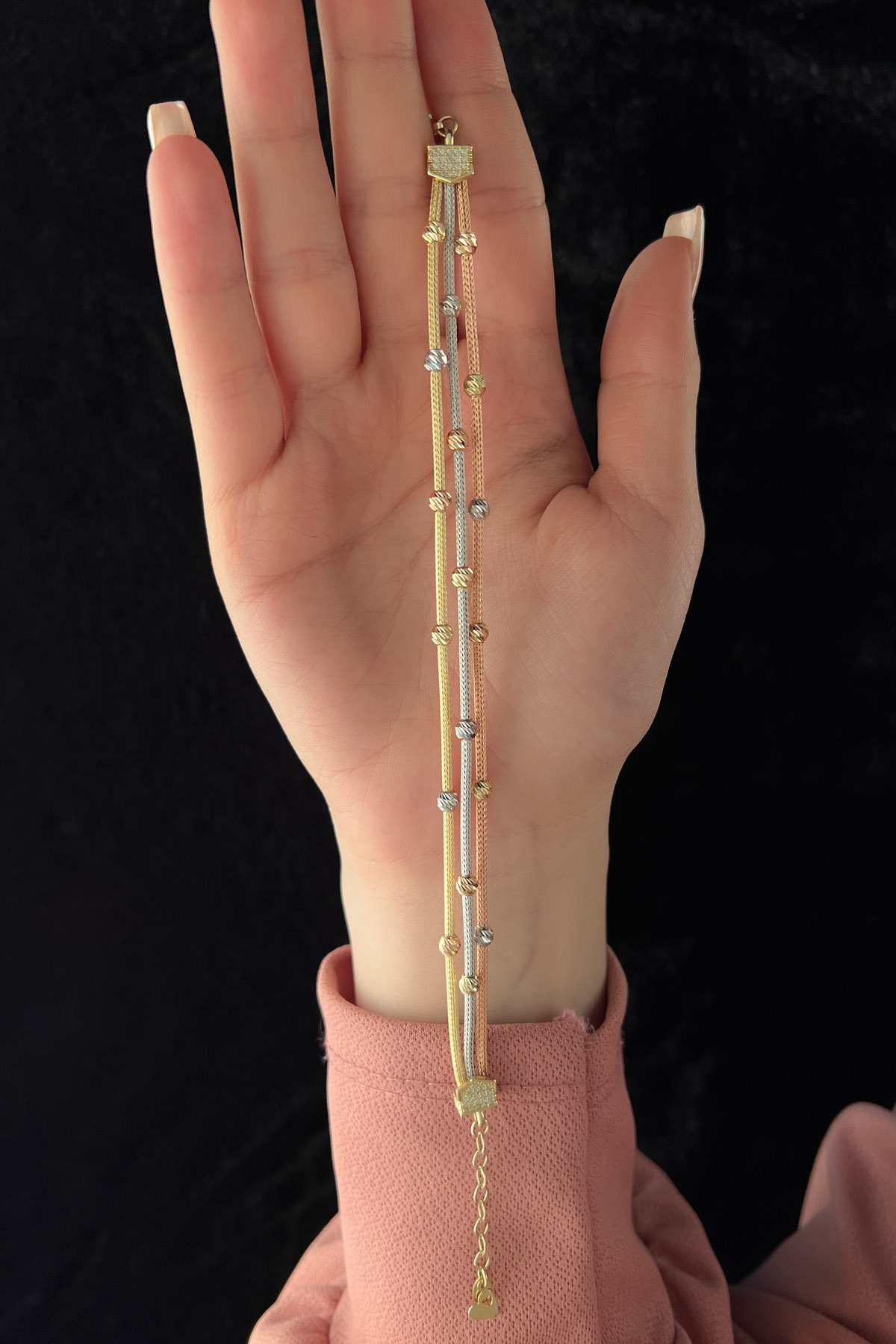 14 Ayar Altın Kadın Bileklik, zarif yapısı ve güçlü formuyla klasik tarzı modern çizgilerle buluşturur. 10,00 gram ağırlığındaki bu model, 18,5 cm uzunluğa ve 3 cm uzatma halkasına sahiptir. 7,62 mm genişliği ile bilekte belirgin bir duruş sağlar. Sağlam kilit sistemi ve yüksek işçilik kalitesiyle uzun süreli kullanım için idealdir.