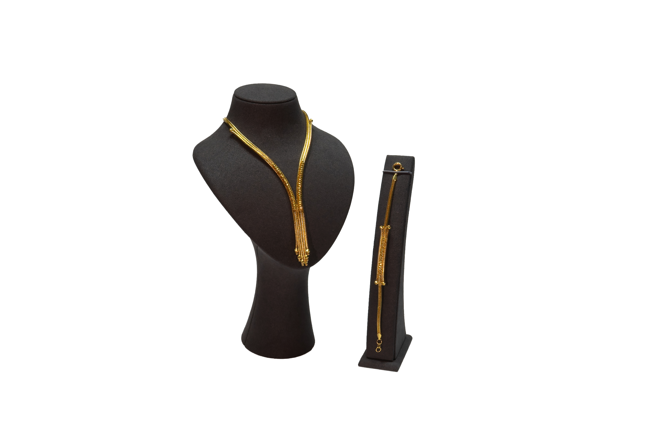 İnce işçilikle hazırlanan hasır zemin üzerine konumlandırılan altın toplar, sete hem hacimli hem de dinamik bir görünüm kazandırır. İkra Kuyumculuk kalitesiyle sunulan bu set, hem günlük kombinlerinize sofistike bir dokunuş katar hem de özel davetlerde zarif bir imza bırakmanızı sağlar.