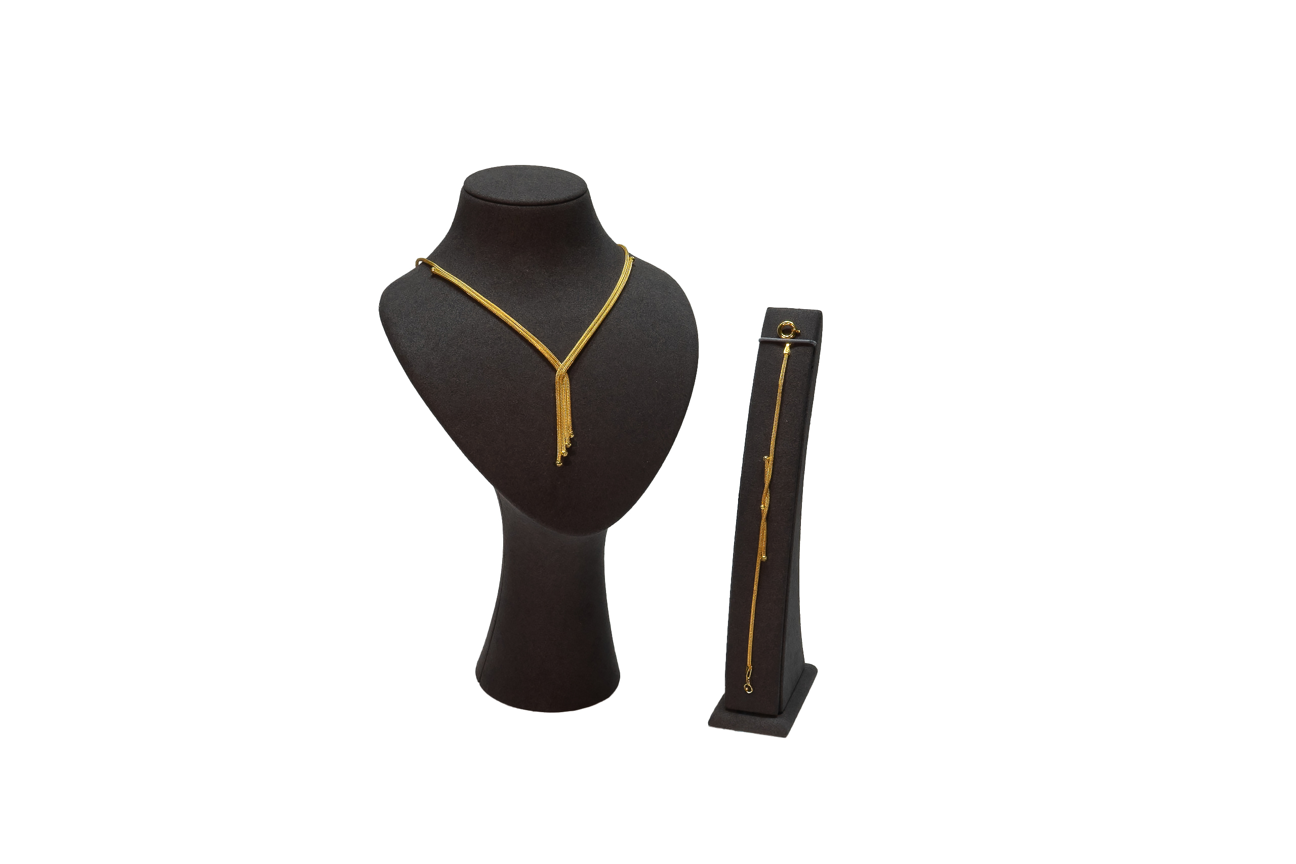 Hafif ve konforlu yapısı sayesinde gün boyu rahat bir kullanım imkanı tanıyan bu takım, hem günlük stilinizi güçlendirir hem de özel anlarınıza zarif bir dokunuş katar. İkra Kuyumculuk usta işçiliğiyle hazırlanan bu tasarım, altının zamansız değerini modern bir estetikle boyun ve bilek hattına taşır.