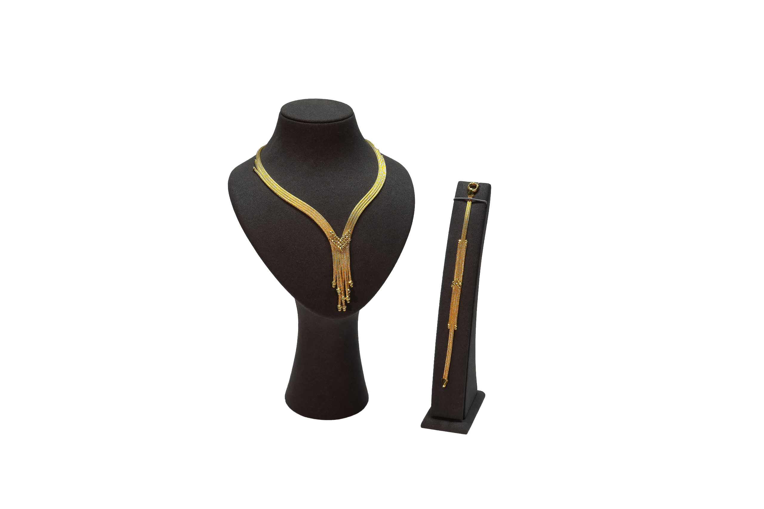 Akışkan yapısı ve boyun hattını dolduran tasarımıyla hem günlük kullanımda hem de özel davetlerde sofistike bir şıklık sağlar. İkra Kuyumculuk kalitesiyle hazırlanan bu takım, geleneksel püskül modasını modern pullu dokuyla birleştirerek mücevher koleksiyonunuza dinamik bir zarafet katar.
