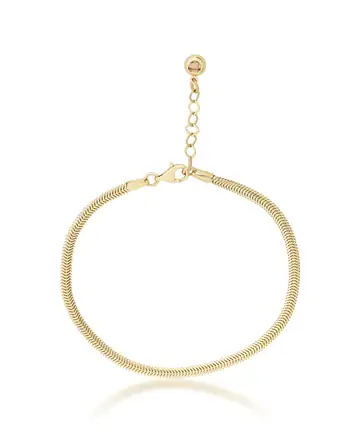 İkra Kuyumculuk kalitesiyle 14 ayar altından özenle üretilen bu Altın Balık Sırtı Bileklik, klasik ve sofistike bir dokuyu modern bir ışıltıyla bileğinize taşıyor. Altının pürüzsüz ve akışkan formunu ön plana çıkaran balık sırtı örgüsü, usta işçiliği sayesinde ışığı her açıda mükemmel bir şekilde yansıtarak stilinize asalet katar.