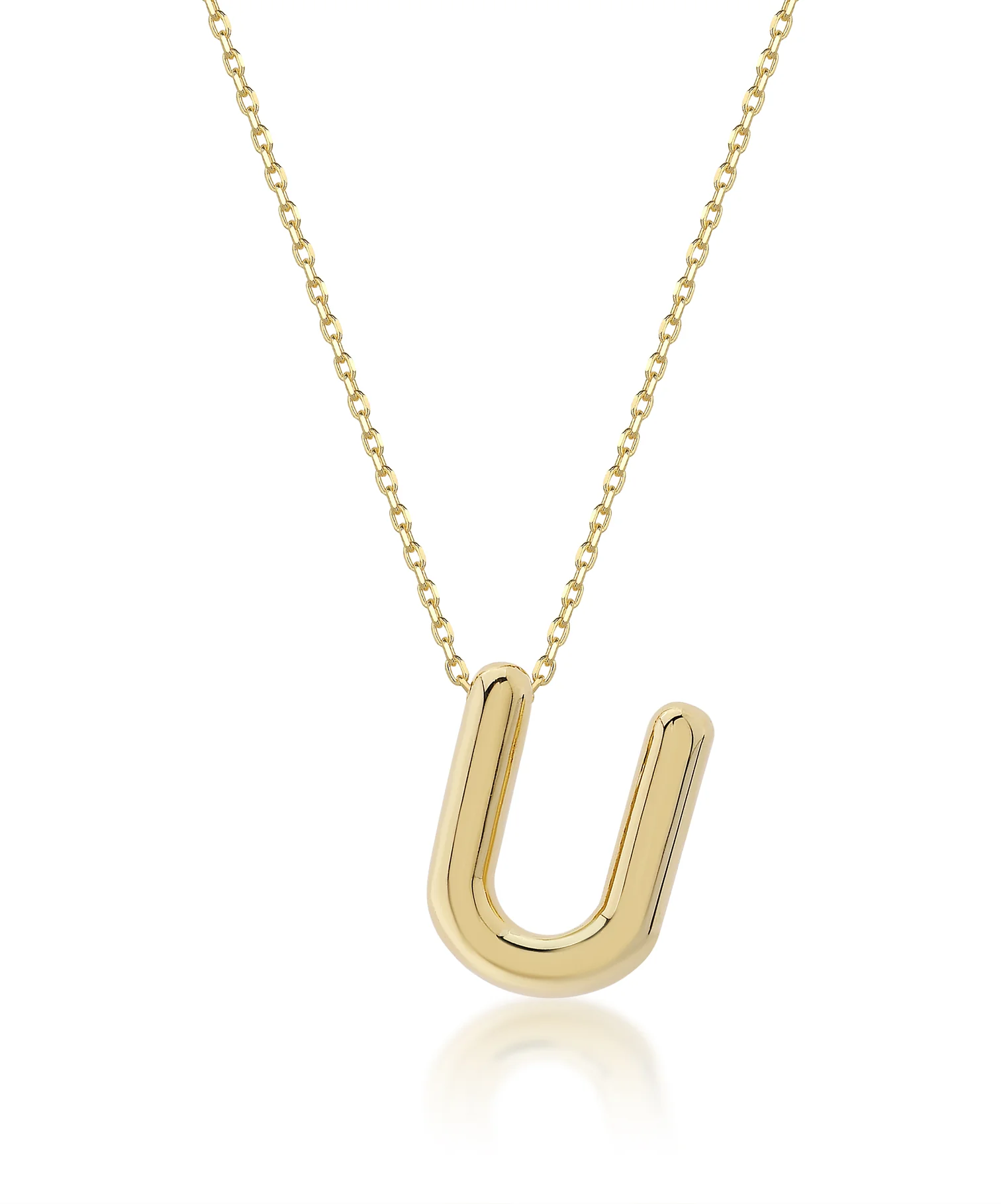Altın Balon U Harf Kolye, 14 ayar altından üretilmiş, 2.18 gram ağırlığında hacimli ve şık bir tasarımdır. Günlük kullanım ve özel kombinlerde dikkat çekici bir tamamlayıcı olarak tercih edilir.