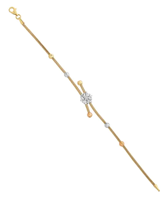 İkra Kuyumculuk koleksiyonuna ait bu Altın Bileklik, zarif tasarımını 14 ayar altın kalitesiyle sunar. 3.92 gram ağırlığındaki hafif ve estetik yapısı, günlük kullanımda bileğinizde zarif bir duruş sergiler.