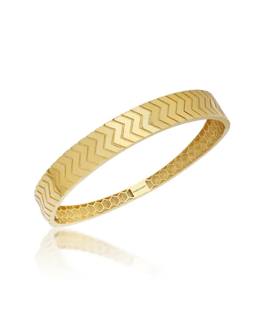 Yüksek kaliteli yüzey işçiliği sayesinde ışığı her açıdan yansıtan bu tasarım, hem günlük şıklığınızı tamamlayan iddialı bir aksesuar hem de kalıcı bir mücevher yatırımı olarak öne çıkar. Modern ve sade hatları, her tarzla kusursuz bir uyum yakalar.