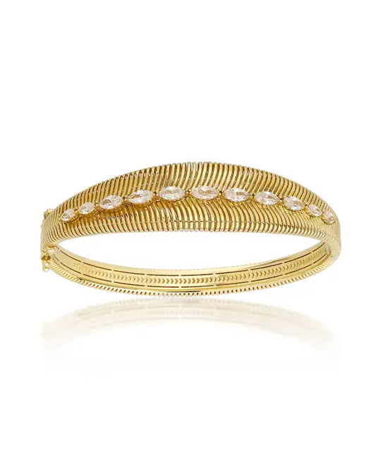 İkra Kuyumculuk koleksiyonuna ait bu Altın Bilezik, kusursuz işçiliği ve modern hatları 14 ayar altın kalitesiyle birleştirerek sunar. 19.18 gram ağırlığındaki tok ve gösterişli yapısı, bileğinizde asil ve prestijli bir duruş sergiler.