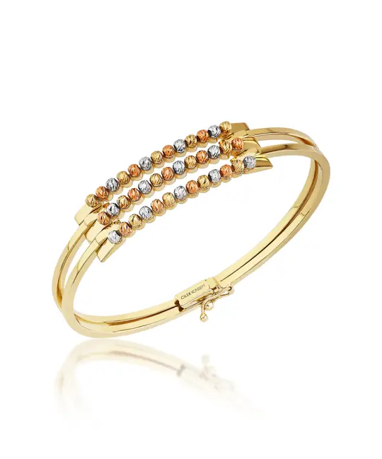İkra Kuyumculuk koleksiyonuna ait bu Altın Bilezik, altının ağırlığını ve zarafetini 14 ayar altın kalitesiyle sunuyor. 10.98 gram ağırlığındaki tok ve dayanıklı yapısı, bileğinizde seçkin, dolgun ve prestijli bir duruş sergiler.