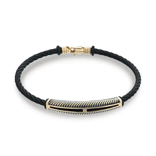 14 ayar altın ve çelik materyallerinin birleşimiyle üretilen bu Erkek Bileklik, yaklaşık 5,74 gram ağırlığındadır ve modern, sağlam ve şık bir görünüm sunar.