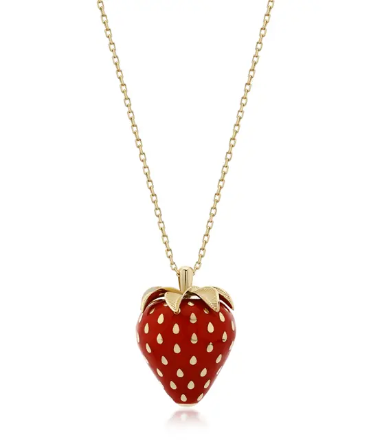 Klasik mücevher estetiğini sevimli bir meyve formuyla birleştiren bu tasarım, tarzına hareketlilik ve özgünlük katmak isteyenler için ideal, yüksek kaliteli bir aksesuardır.