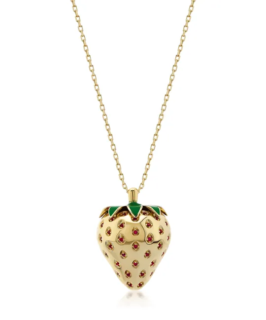 Çilek formunun en renkli ve özgün haliyle yorumlandığı bu özel parça, altının ışıltısını pozitif bir enerjiyle birleştirerek stilinize dinamik bir zarafet katar.