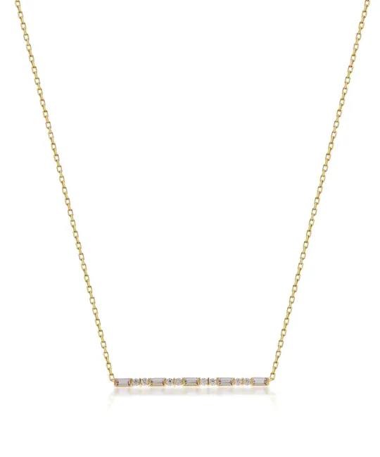 İkra Kuyumculuk koleksiyonuna ait bu Altın Çizgi Kolye, minimalist ve modern tasarımın şıklığını 14 ayar altın kalitesiyle sunar. 1.93 gram ağırlığındaki hafif ve zarif yapısı, boynunuzda narin bir ışıltı sergilerken gün boyu konforlu bir kullanım sağlar.