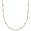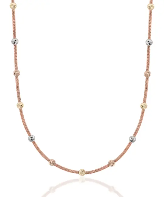 İkra Kuyumculuk koleksiyonuna ait bu Altın Dorika Kolye, farklı altın tonlarındaki dorika toplarının uyumuyla modern bir estetik sunuyor. 14 ayar altın kalitesiyle üretilen ve 6.11 gram ağırlığında olan bu zarif parça, 42-45 cm aralığında ayarlanabilir zinciriyle her tarzda şıklığı tamamlayan sofistike bir aksesuardır.