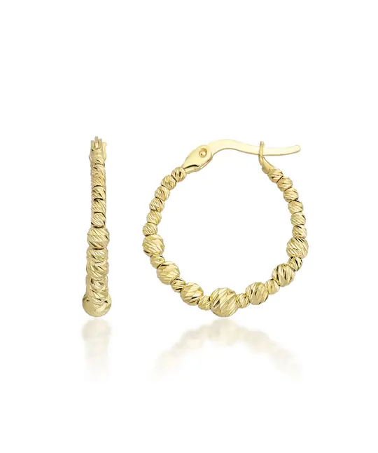 Bu zarif halka küpe, dokulu detaylarıyla dikkat çeker. Altının ışıltısı, her biri özenle şekillendirilmiş halkalarla birleşerek modern bir görünüm sunar. Sade ve şık tasarımıyla, özel günlerde ya da günlük yaşamda tercih edebileceğiniz bu küpe, stilinizi tamamlayacak zarif bir seçenek sunuyor.