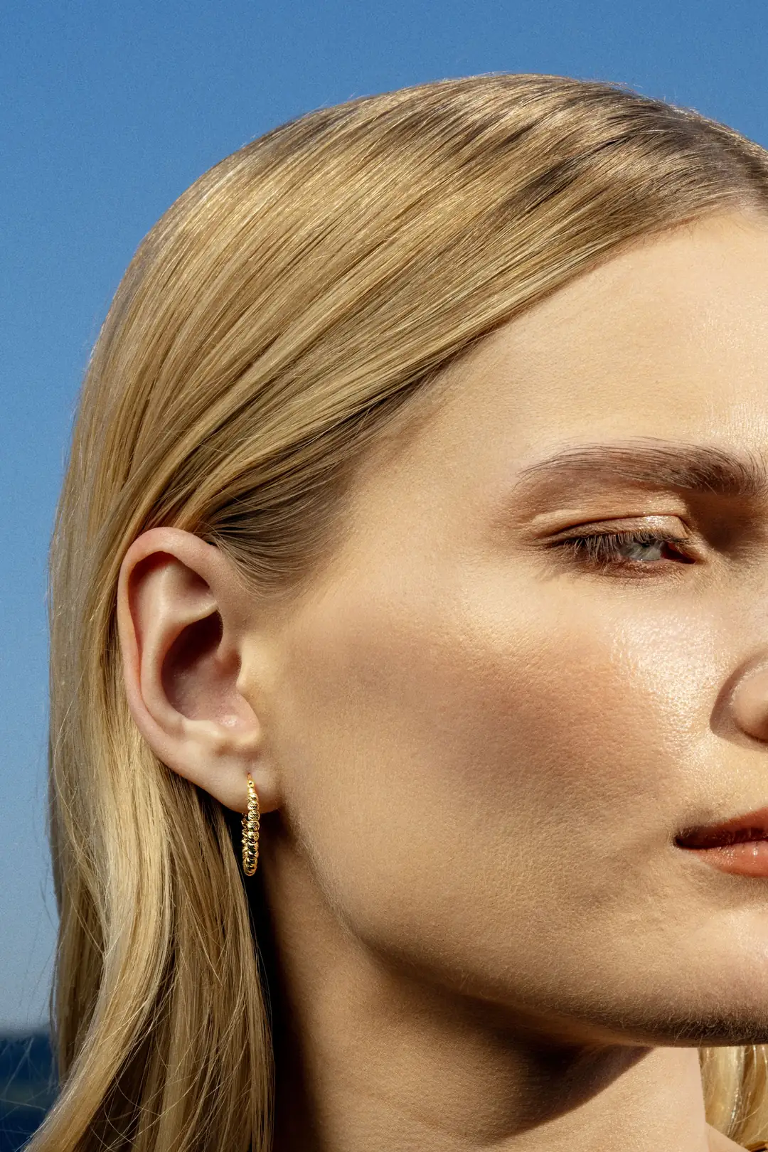 Zarif işçiliğiyle dikkat çeken bu halka küpe, altın yüzeyinin şıklığını ve estetiğini bir araya getiriyor. İnce detaylarla şekillendirilmiş tasarımı, modern ve klasik tarzları birleştirerek göz alıcı bir görünüm sunuyor. Günlük kullanıma uygunluğu ve zarif yapısıyla stilinizi tamamlayan bu küpe, her anınıza şıklık katmak için ideal bir tercih olacaktır.