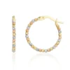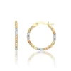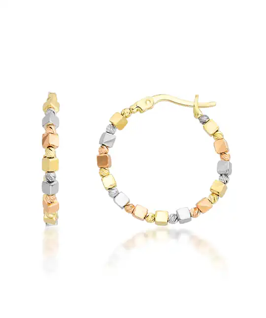 Bu zarif halka küpe, üç renkli altın bileşiminin şık birleşimiyle göz kamaştırıcı bir görünüm sunuyor. Altın, gümüş ve rose altın tonlarının mükemmel uyumu, her tarzla uyum sağlar ve zarif bir ışıltı ekler. Hem günlük hem de özel anlar için ideal olan bu küpe, stilinize modern bir dokunuş katarken, göz alıcı detaylarıyla da dikkat çeker.