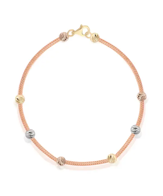 İkra Kuyumculuk koleksiyonuna ait bu Altın Dorikalı Bileklik, klasik dorika formunu modern ve şık bir dizilimle 14 ayar altın işçiliğinde sunuyor. 3.62 gram ağırlığındaki estetik ve dengeli yapısı, özel kesim dorika toplarının ışıltısını bileğinizde ön plana çıkararak her harekette dikkat çekici bir parlaklık sergiler.
