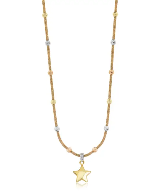 Altının farklı tonlarının uyumuyla hazırlanan bu parça, dorika toplarının ışıltısını yıldız sembolüyle birleştirerek günlük şıklığınızı zarif bir dokunuşla tamamlar.