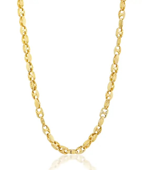 İkra Kuyumculuk kalitesiyle 14 ayar altından özenle üretilen bu Altın Erkek Kolye, 26 gramı aşan yüksek ağırlığı ve gösterişli tasarımıyla erkek stiline güç ve prestij katan seçkin bir parçadır. Usta işçilikle şekillendirilen bu model, modern ve maskülen hatlarıyla hem günlük stilinizde hem de en özel anlarınızda dikkat çekici bir duruş sergiler.