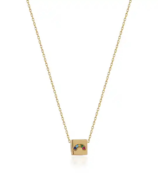 İkra Kuyumculuk koleksiyonuna ait bu Altın Gökkuşağı Kolye, umudun ve neşenin simgesi olan gökkuşağı formunu 14 ayar altın ve canlı bir ışıltıyla buluşturuyor. 2.57 gram ağırlığındaki zarif ve özgün yapısı, üzerine titizlikle yerleştirilen renkli taş detayları sayesinde boyun hattınızda enerjik ve göz alıcı bir yansıma oluşturur.