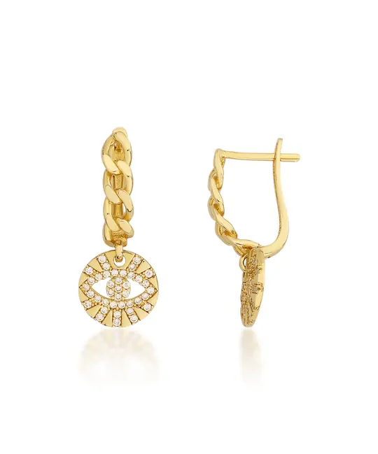 İkra Kuyumculuk koleksiyonuna ait bu Altın Göz Küpe, koruyucu nazar sembolizmini 14 ayar altın kalitesiyle buluşturur. 3.93 gram ağırlığındaki ideal yapısı, günlük kullanımda konfor ve şıklığı bir arada sunar.