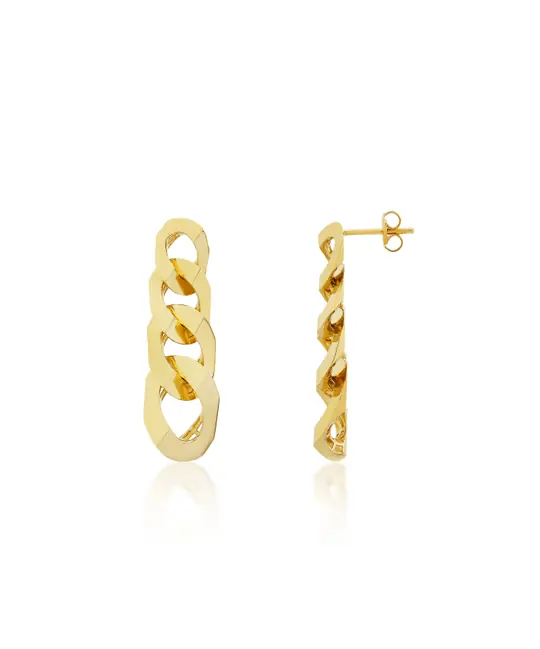 İkra Kuyumculuk kalitesiyle 14 ayar altından üretilen bu Altın Gurmet Küpe, klasik gurmet zincir formunun modernize edilmiş tasarımıyla stilinize güçlü ve şık bir dokunuş katıyor. Yaklaşık 4.53 gram ağırlığındaki bu model, karakteristik halka geçişleri ve dolgun yapısıyla hem günlük kombinlerinizde hem de özel davetlerde sofistike bir duruş sergiler.