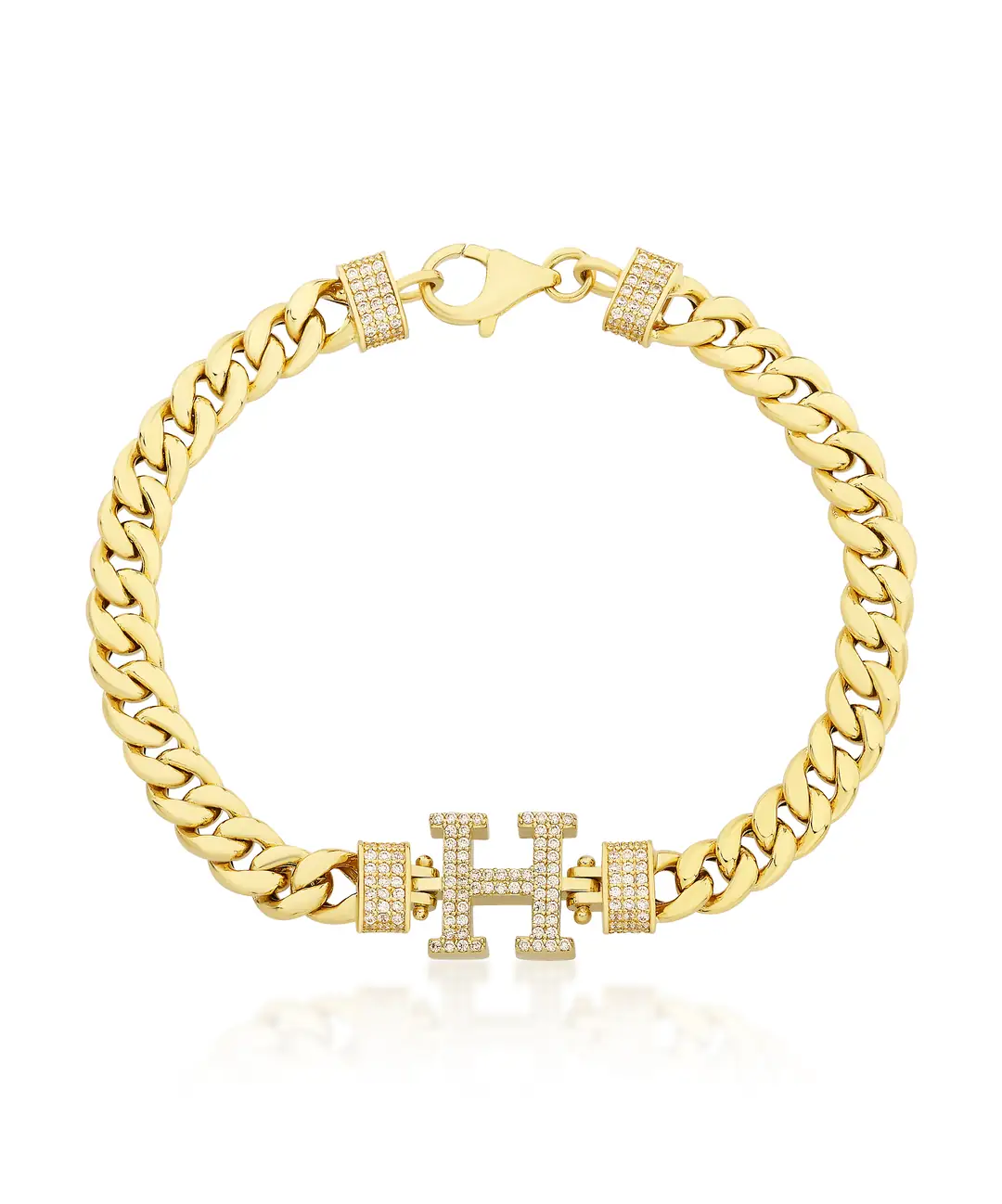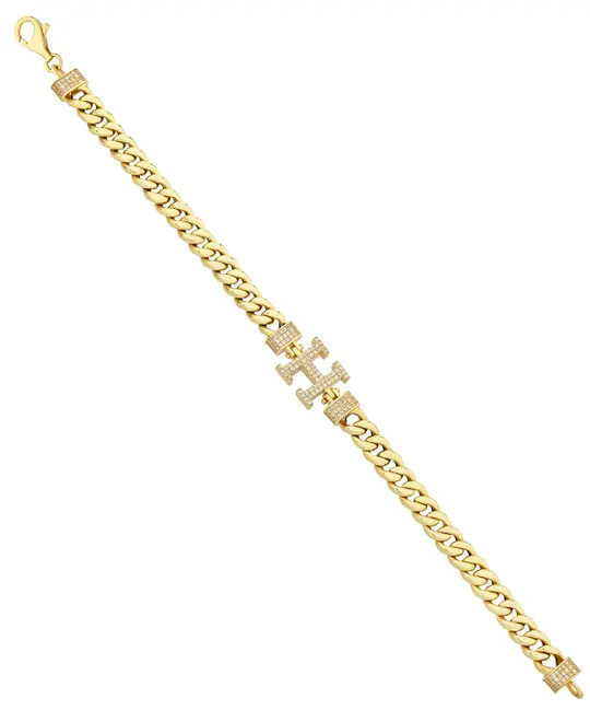 Altın H harf bileklik, şıklığı ve zarafetiyle dikkat çeker. Bilekliği süsleyen büyük “H” harfi, taş detayları ile zenginleştirilmiş ve altın zincirle mükemmel bir uyum içinde tasarlanmıştır.