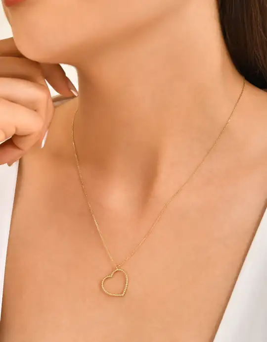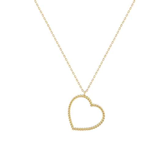Zarif hatları ve burgu dokusuyla klasik kalp formuna modern bir yorum getiren bu kolye, hem günlük kombinlerinizi tamamlar hem de kalıcı bir zarafet sunar.