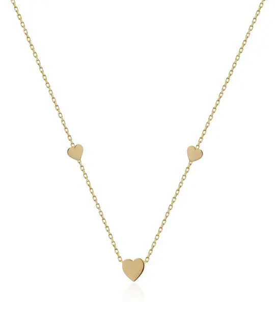 Maden: ALTIN | Ayar: 14 | Ürün Ağırlığı: 1.88 Gr | Zincir: 42-45 cm | Model: ÜÇLÜ KALP FİGÜRÜ | Stok No: KB03193 | Kargo: 3 GÜN