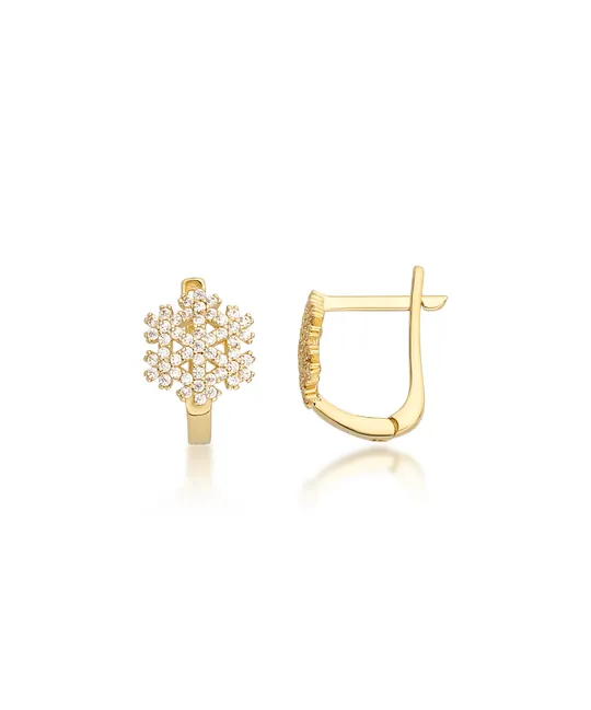İkra Kuyumculuk koleksiyonuna ait bu Altın Kar Tanesi Küpe, kış mevsiminin zarafetini simgeleyen kar tanesi formunu 14 ayar altın kalitesiyle buluşturur. 2.54 gram ağırlığındaki hafif ve estetik yapısı, kulaklarınızda narin bir ışıltı sergilerken gün boyu konforlu bir kullanım sunar.