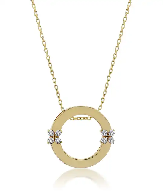 İkra Kuyumculuk koleksiyonuna ait bu Altın Kolye, yuvarlak formun zamansız estetiğini 14 ayar altın kalitesiyle buluşturuyor. 2.29 gram ağırlığındaki zarif ve dengeli yapısı, tasarımın uç kısımlarına titizlikle yerleştirilen ışıltılı taşlarla hareketlendirilerek minimalist bir şıklık sunar.
