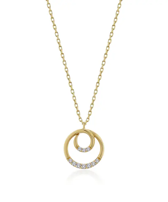 İkra Kuyumculuk koleksiyonuna ait bu Altın Kolye, geometrik mükemmelliği ve klasik zarafeti 14 ayar altın işçiliğiyle sunuyor. 1.76 gram ağırlığındaki hafif ve estetik yapısı, dairesel form üzerine titizlikle işlenmiş parıltılı taş detayları ile boyun hattınızda dengeli ve sofistike bir ışıltı odağı oluşturur.