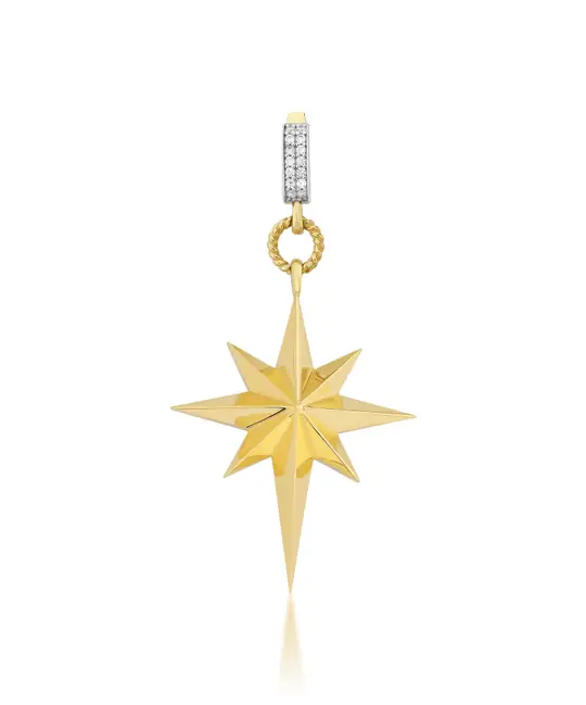 İkra Kuyumculuk koleksiyonuna ait bu Altın Kuzey Yıldızı Charm, yol gösterici kutup yıldızı sembolünü 14 ayar altın işçiliğiyle birleştirerek sunuyor. 2.4 gram ağırlığındaki minimalist ve anlamlı yapısı, kuzey yıldızının ikonik hatlarını altının doğal parlaklığıyla vurgulayarak aksesuarınıza mistik bir derinlik katar.